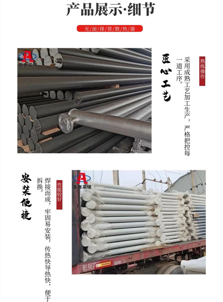 散热性能好,承压才能高结构相对比较简单,装置和修理极为简洁。合适各种大型热车温暖热水采暖作业。光排管散热器还可运用于包含太阳能,煤炉,液化气,电热器等多种热源取暖运用。大范围的应用于居室。