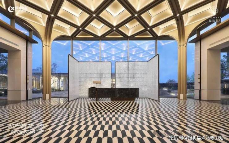 地下车库入户水磨石专配,背景墙都是大块岩板,吊顶已不再是此前盛行的星空顶,灯火气氛感更强了;未来小区内还有露天泳池