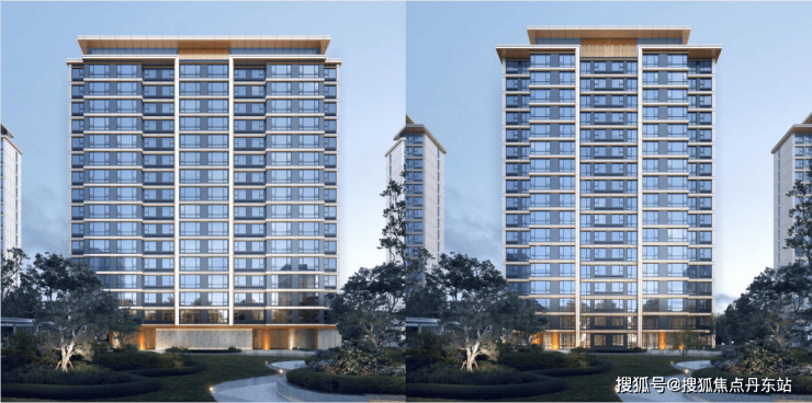小区在规划上遵从国贸(上系)产品系,现代风格。外立面规划上,立面使用大面积玻璃+部分房间近乎落地窗规划(窗下有反坎)+层间金属装修线条,提高修建全体感和精美度,外立面大面选用仿石多彩漆,部分灰色金属格栅,金属型材收边构成。极具次序感的几许立面,使得产品也是历久弥新,显示住所质量。