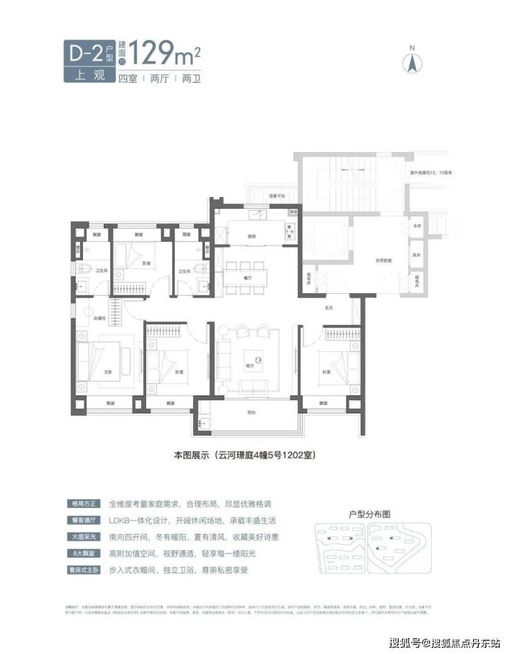 主卧套房是改进4房的标配,但三卧室朝南、全卧室飘窗规划就体现出该项意图异乎寻常了!实用性更强!日子舒适度更高!
