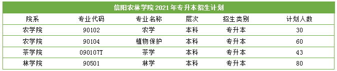 2021年信阳农林学院总招生方案213人,总招生专业4个,总招生人数与2020年比较缩招287人。