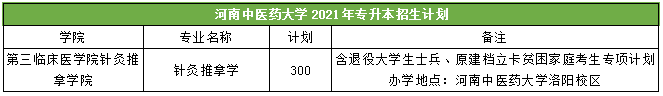 2021年河南中医药大学总招生方案300人,总招生专业1个。总招生人数与2020年比较扩招149人。