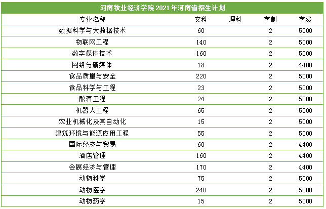 2021年河南牧业经济学院总招生方案1500人,总招生专业16个。总招生人数与2020年比较不变。